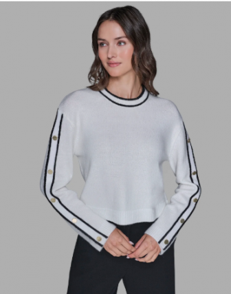 KARL LAGERFELD PARIS BUTTON SLEEVE PULLOVER SWEATER