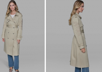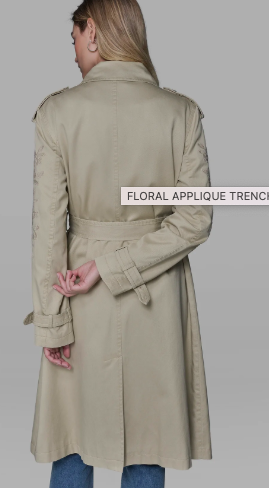 KARL LAGERFELD PARIS FLORAL APPLIQUE TRENCH COAT
