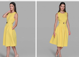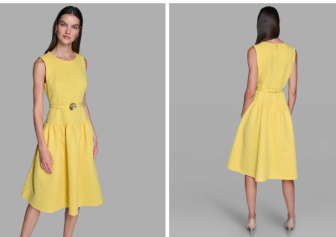 KARL LAGERFELD PARIS FLORAL JACQUARD A-LINE DRESS WITH FLOWE