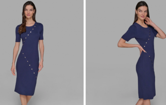 KARL LAGERFELD PARIS BUTTON-EMBELLISHED MIDI SWEATER DRESS