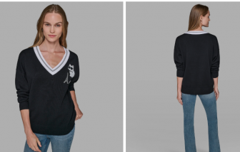 KARL LAGERFELD PARIS VARSITY SWEATER WITH PATCHES