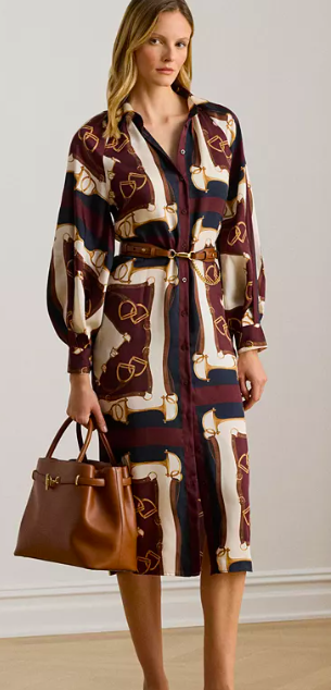 Ralph Lauren Women's Equestrian-Print Twill Midi Shirt