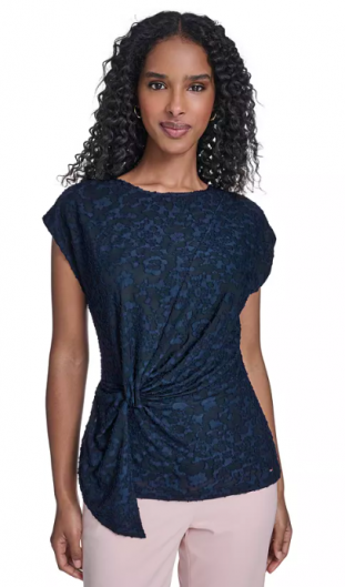 Tommy Hilfiger Women's Floral Clip Draped Crewneck Top