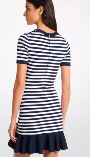 Michael Kors Women's Stripe Flare Crew Neck Mini Dress