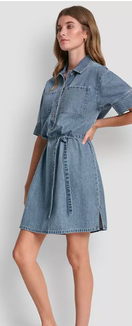 DKNY Jeans Women's Button-Front Shirt Dress With Remova