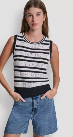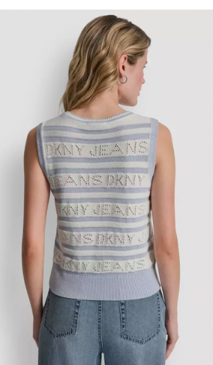 DKNY Jeans Women's Sleeveless Logo Pointelle Striped Sw
