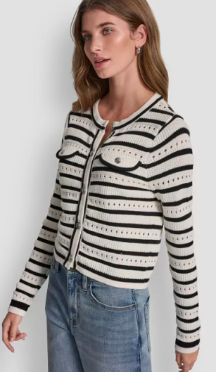DKNY Jeans Women's Crew Neck Pointelle Sweater