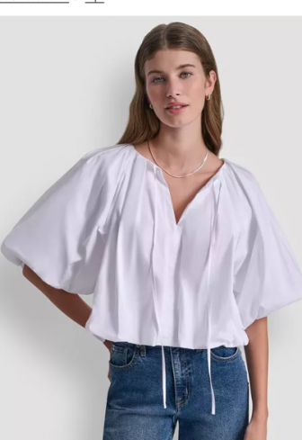 DKNY Jeans Women's V-Neck Pull-On Bubble Top