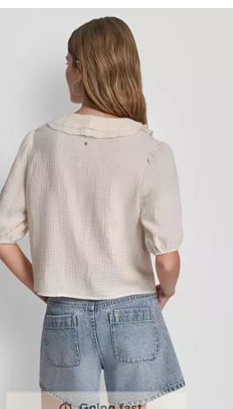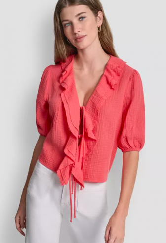DKNY Jeans Women's V-Neck Short Puff-Sleeve Tie-Front S