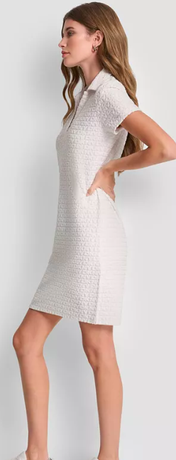 DKNY Jeans Women's Logo Jacquard Split Neck Collared Mi