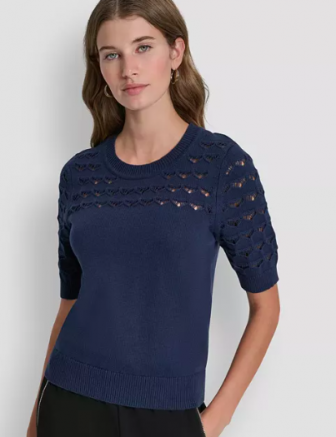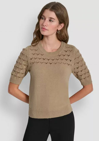 DKNY Women's Short-Sleeve Ribbed Hem Sweater