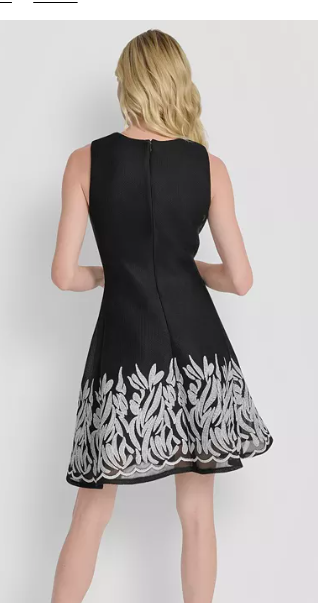 DKNY Women's Embroidered Mesh Sleeveless Fit & Flar