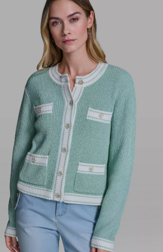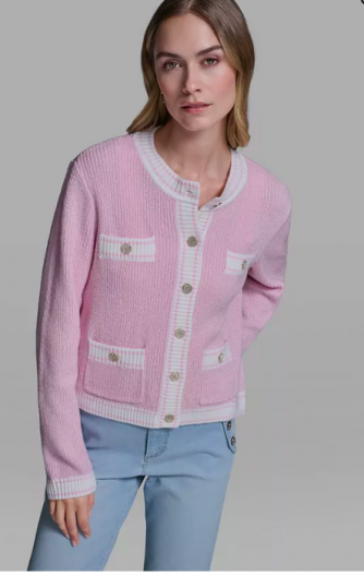 KARL LAGERFELD PARIS Women's Marled Crew Neck Cardigan
