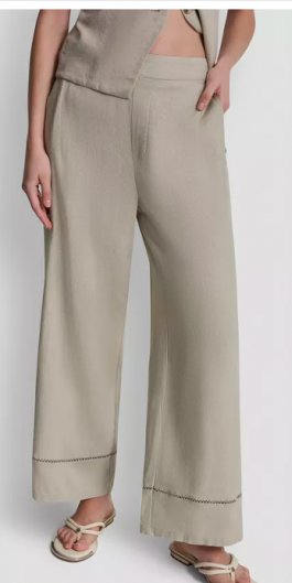 DKNY Jeans Petite Linen-Blend High-Rise Pull-On Wide-Leg Pan