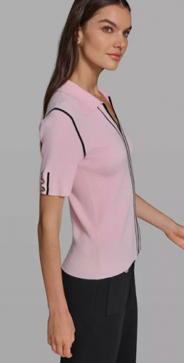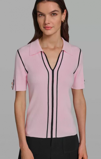 KARL LAGERFELD PARIS Women's Short-Sleeve Johnny Collar