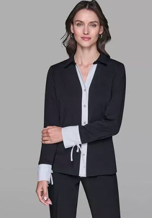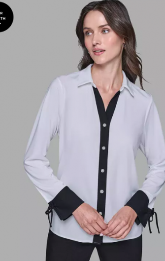 KARL LAGERFELD PARIS Women's Contrast Collared Top