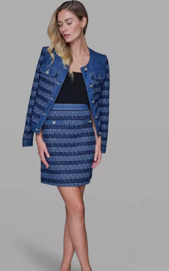 KARL LAGERFELD PARIS Women's Tweed and Denim Zipper Min