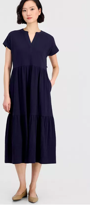 Nautica Women's Cotton Tiered Midi Dress