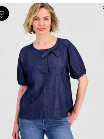 Nautica Jeans Women's Cotton Bow-Trim Top