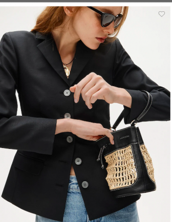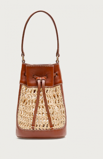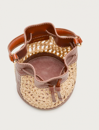 J CREW Drawstring bag in straw and leather