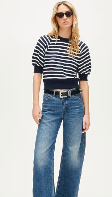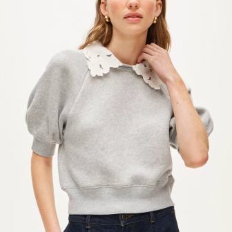 J CREW Heritage terry puff-sleeve sweatshirt with eyelet col
