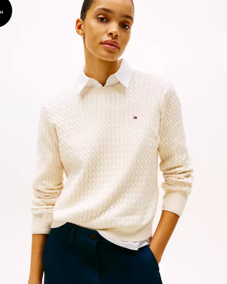 Tommy Hilfiger Women's Fine Gauge Cable Crewneck Top