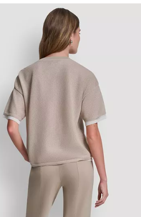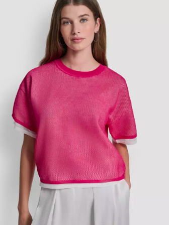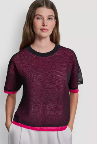DKNY Women's Short-Sleeve Boxy 2-Layer Mesh Sweater