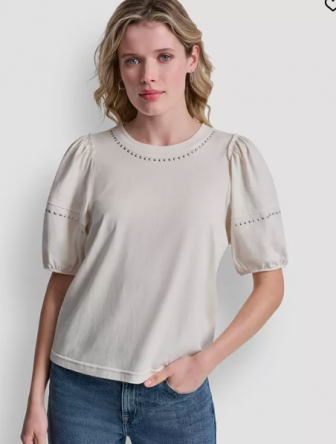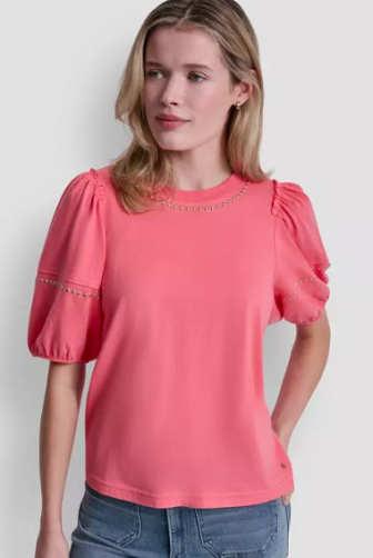DKNY Jeans Women's Dome Studs Mini Sleeve T-Shirt