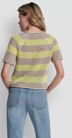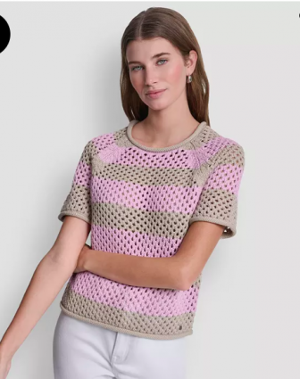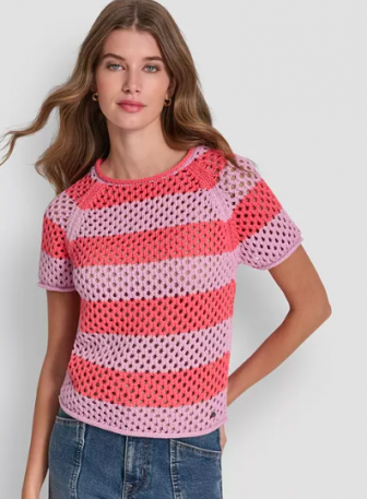 DKNY Jeans Women's Short-Sleeve Raglan Stripe Pointelle