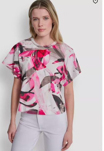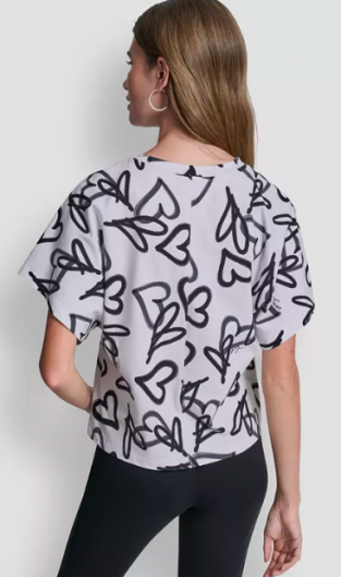 DKNY Women's Heart Print Short-Sleeve Crew Neck Top