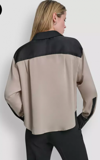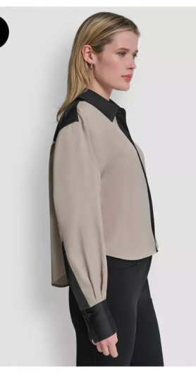 DKNY Petite Patch Work Button-Up Top