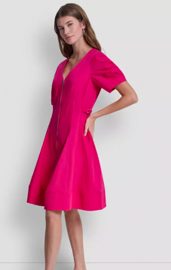 DKNY Women's Lantern Puff-Sleeve V-Neck Dress