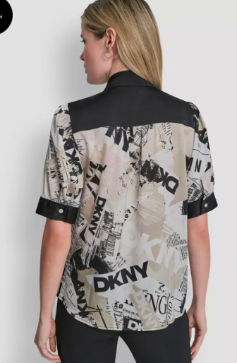 DKNY Women's Newspaper-Print Woven Blouse