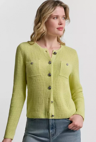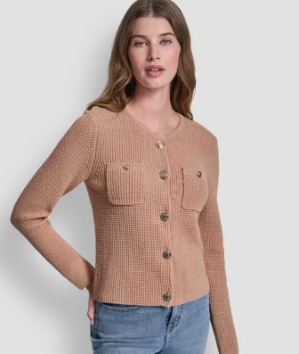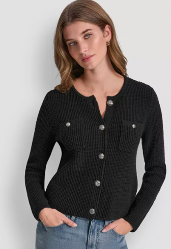 DKNY Jeans Women's Long-Sleeve Tuck Stitch Crewneck Car