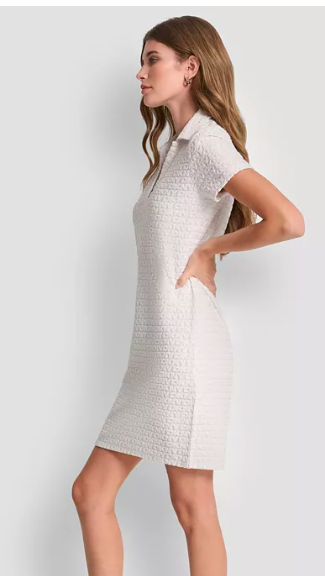 DKNY Jeans Women's Logo Jacquard Split Neck Collared Mi