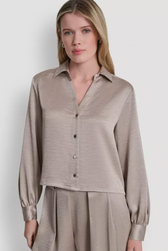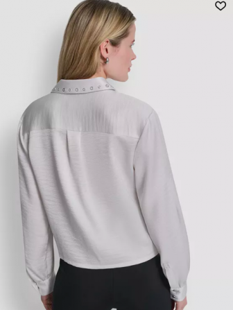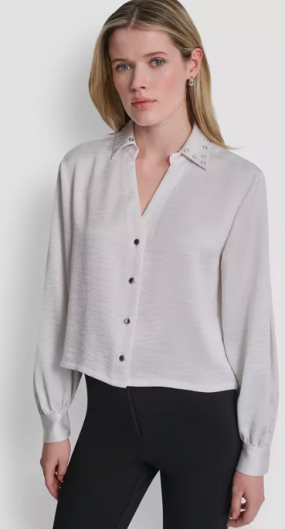 DKNY Women's Studded Collar V-Neck Shirt