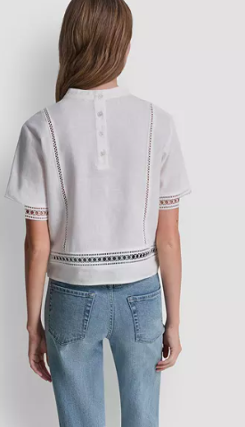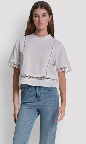 DKNY Jeans Women's Crewneck Linen-Blend Short-Sleeve To