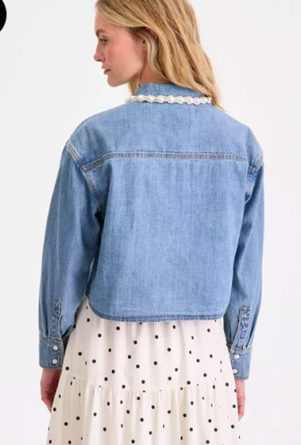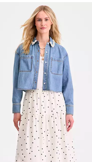 On 34th Women's Faux-Pearl-Trim Denim Shirt