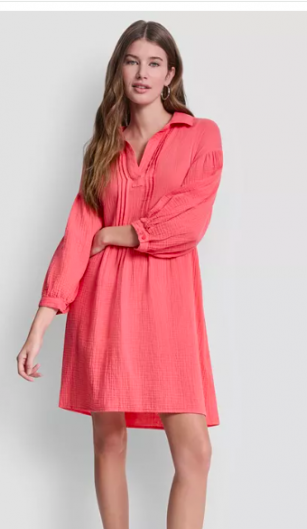 DKNY Jeans Women's Henley Pleated Tiered Dress